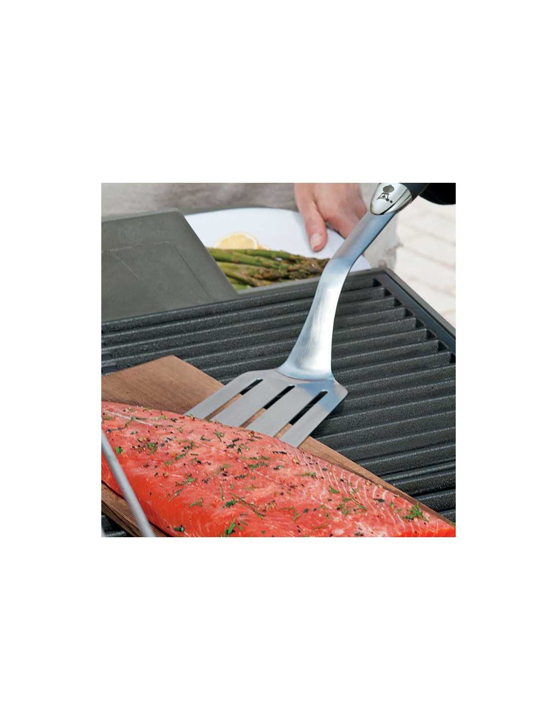 Consente di manovrare in tutta comodità il cibo in griglia. Ha un'impugnatura antiscivolo ergonomica ed è molto leggera; è perfetta per girare gli hamburgers o i pesci come il branzino o l'orata e tutti quei cibi delicati che con la pinza si rischia di rovinare.