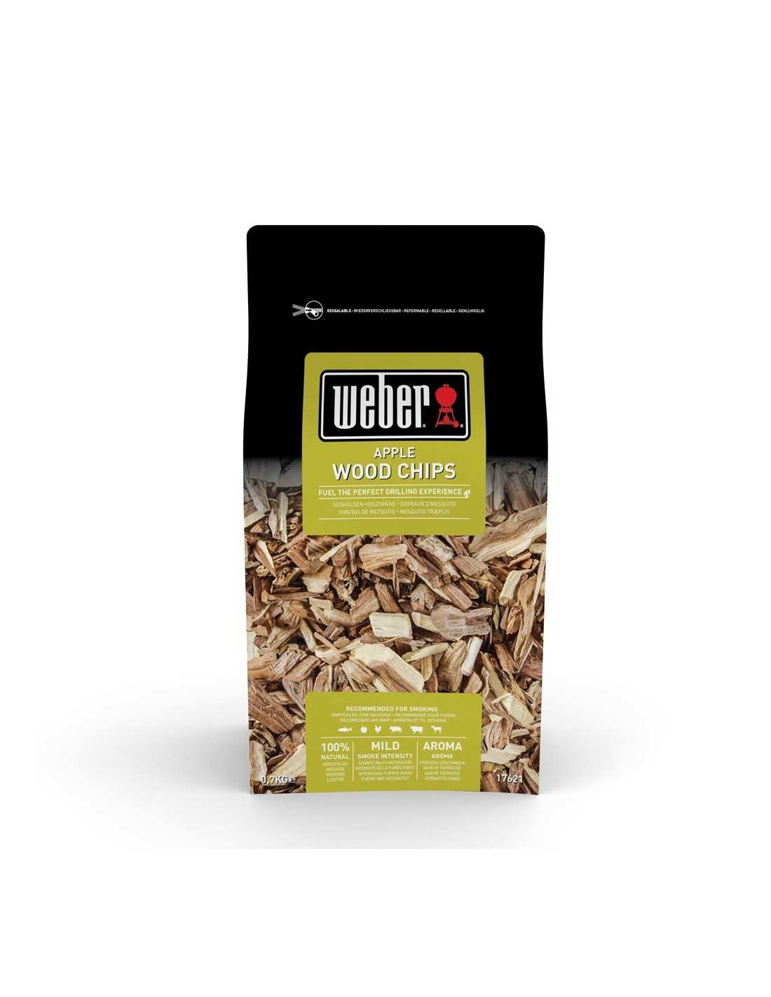 Le chips di legno per affumicatura non sono altro che dei trucioli di diversi tipi di legno accuratamente selezionati da Weber per garantire la componente aromatica del fumo e cuocere in completa sicurezza.