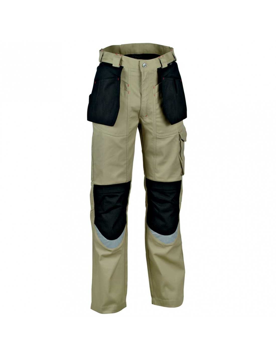 Pantaloni da lavoro Cofra Carpenter V064-0-00, nero-beige , un pantalone sagomato, multi-tasca, per tutte le stagioni e resistente all'usura.