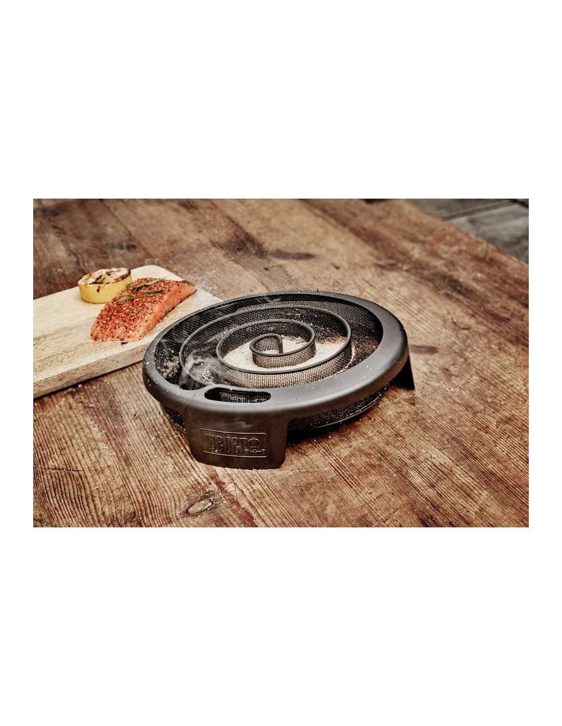 Con l'affumicatore a freddo Weber pui esplorare l'arte dell'affumicatura a freddo. Potrai trasformate qualsiasi Barbecue in un affumicatore a freddo, il design assicura che la polvere di affumicatura bruci senza fiamma, affumicando a bassa temperatura anche per 10 ore. L'affumicatore a freddo è un accessorio universale, non importa se il tuo barbecue è a gas o elettrico, non è necessario neppure che sia di marca Weber. Basterà chiudere con il coperchio l'area in cui si trova il cibo da affumicare.