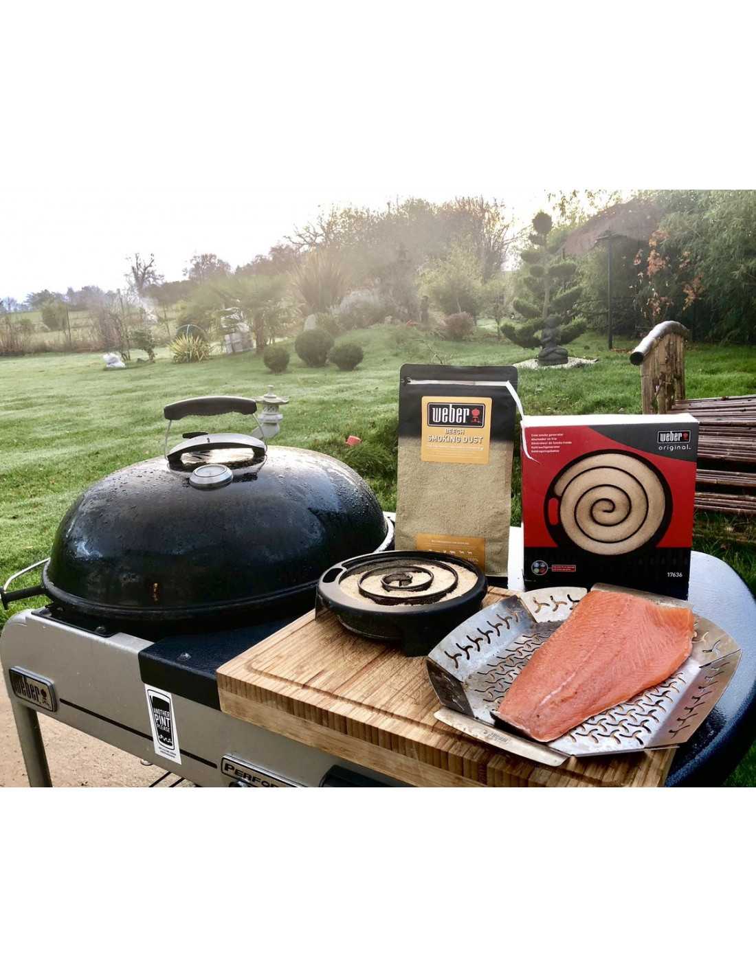 Riempiendo la spirale dell'affumicatore a freddo Weber con la polvere apposita di legno e posizionandolo sulla griglia, all'interno del barbecue, chiudendo il coperchio, potrete effettuare un ottima affumicatura a freddo, a temperature basse, attorno ai 26 gradi.