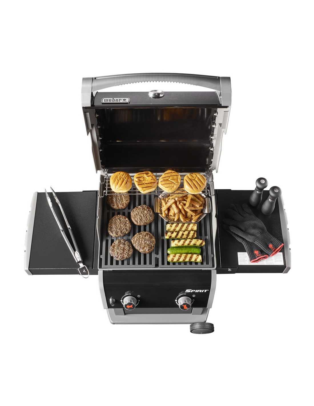 Il Barbecue a gas Weber Spirit E-210 original è il grill ideale per la città. Infatti, con le sue dimensioni compatte si adatta agli spazi più stretti, pur garantendo cotture per molte persone. I suoi ripiani laterali sono in metallo, solidi, e completamente richiudibili. L'E-210 è una ottima macchina anche perché abbina delle dimensioni compatte ad una griglia in ghisa di 52 x 44 cm, è dotato inoltre di due bruciatori principali indipendenti che consentono di regolare le diverse zone di calore della griglia. Questo, in sinergia con il coperchio, consente di realizzare il metodo di cottura diretta e il metodo di cottura indiretta: si combina cioè il calore che viene sprigionato dalla griglia a quello del moto convettivo dell'aria che circola al di sotto del coperchio. Il risultato è sorprendente: cibo croccante esternamente e morbido e succoso all'interno.