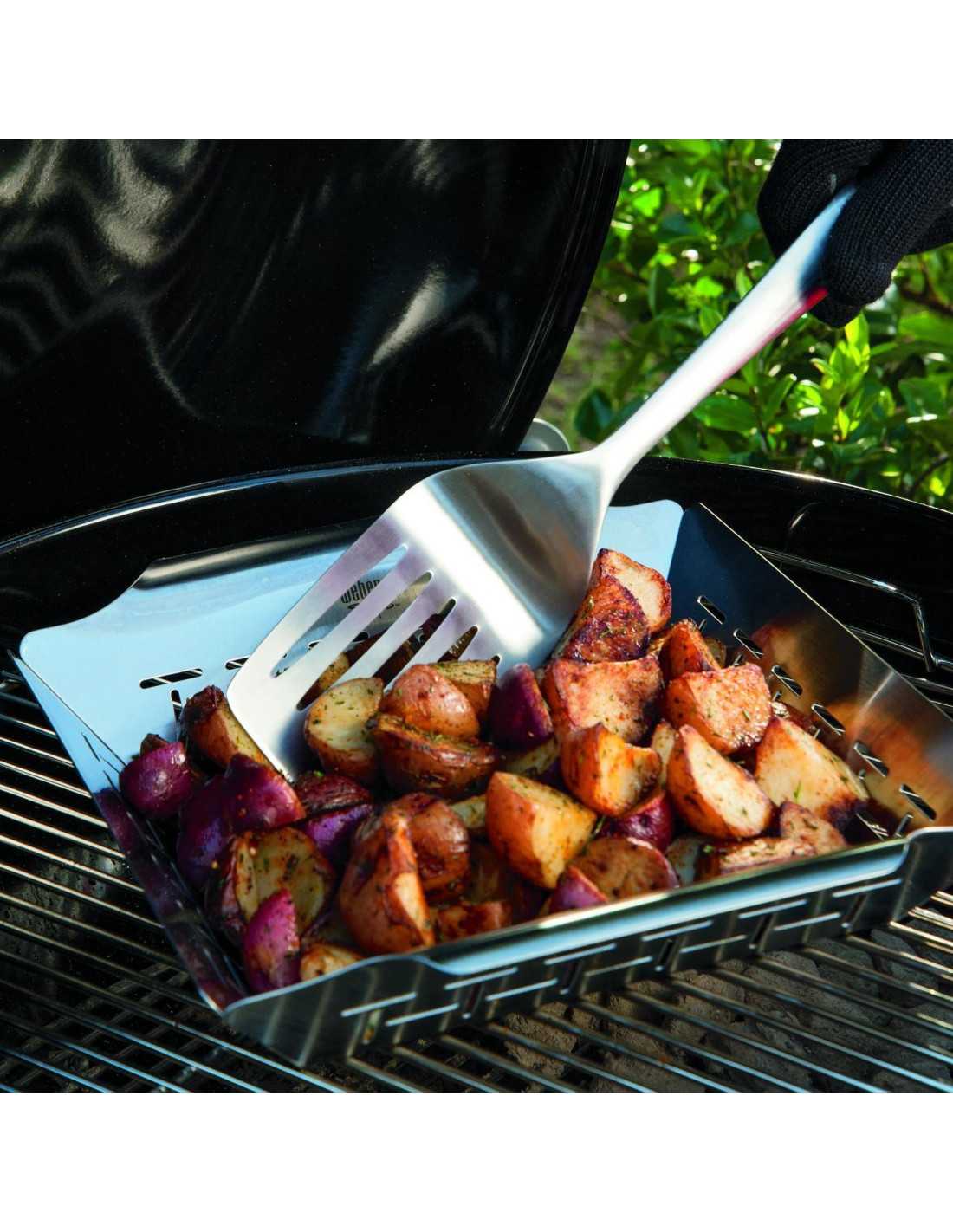 Un'idea Weber pensata per facilitare la cottura di verdure, patate arrosto già tagliate e straccetti di carne saltati senza doverli girare di continuo, con risultati davvero eccellenti e preparazioni di contorni veloci e squisiti da servire a tutti gli ospiti, comodamente dal barbecue di casa nostra.