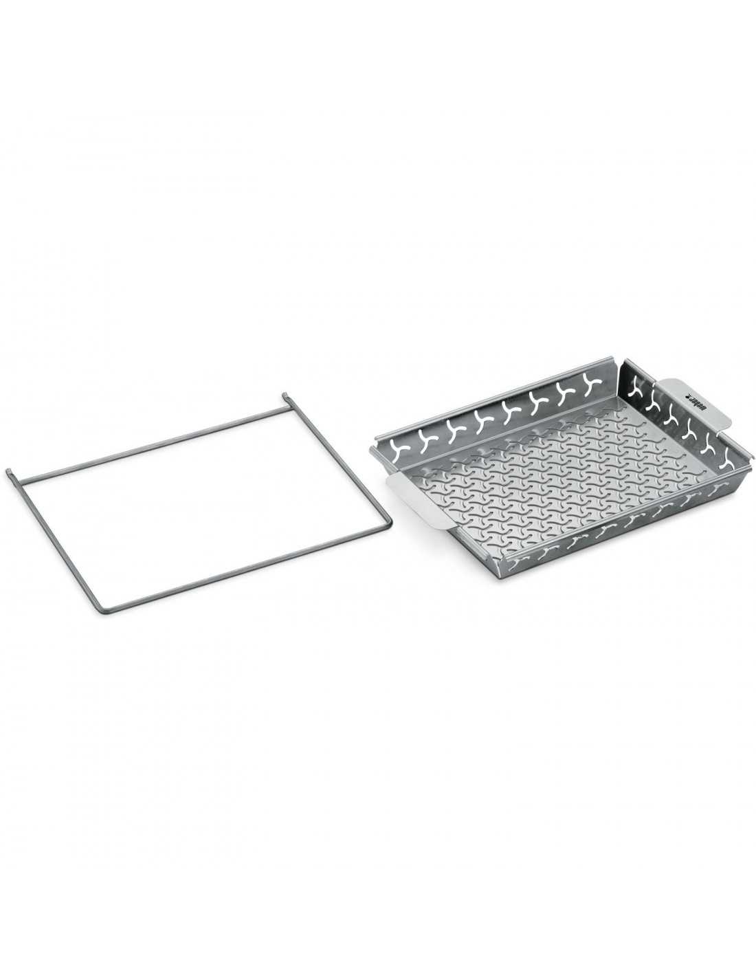 La Vaschetta Weber per verdure (per supporto multilivello) è realizzata in acciaio inox ed è un accessorio da utilizzare in abbinamento al supporto per cotture su più livelli Weber.