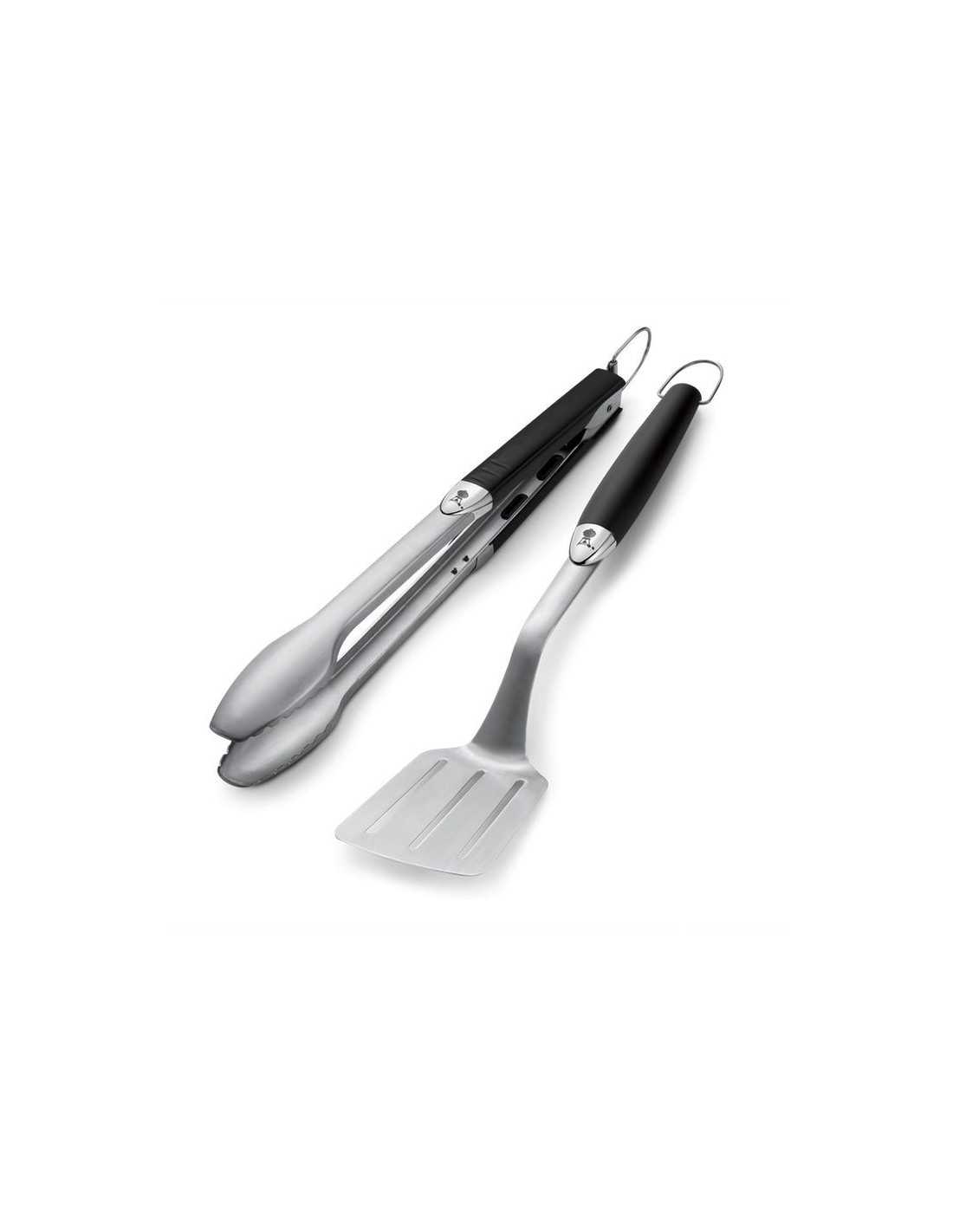 Il Kit 2 accessori Weber in acciaio inox è composto dalla classica ed inimitabile pinza Weber e dalla spatola.