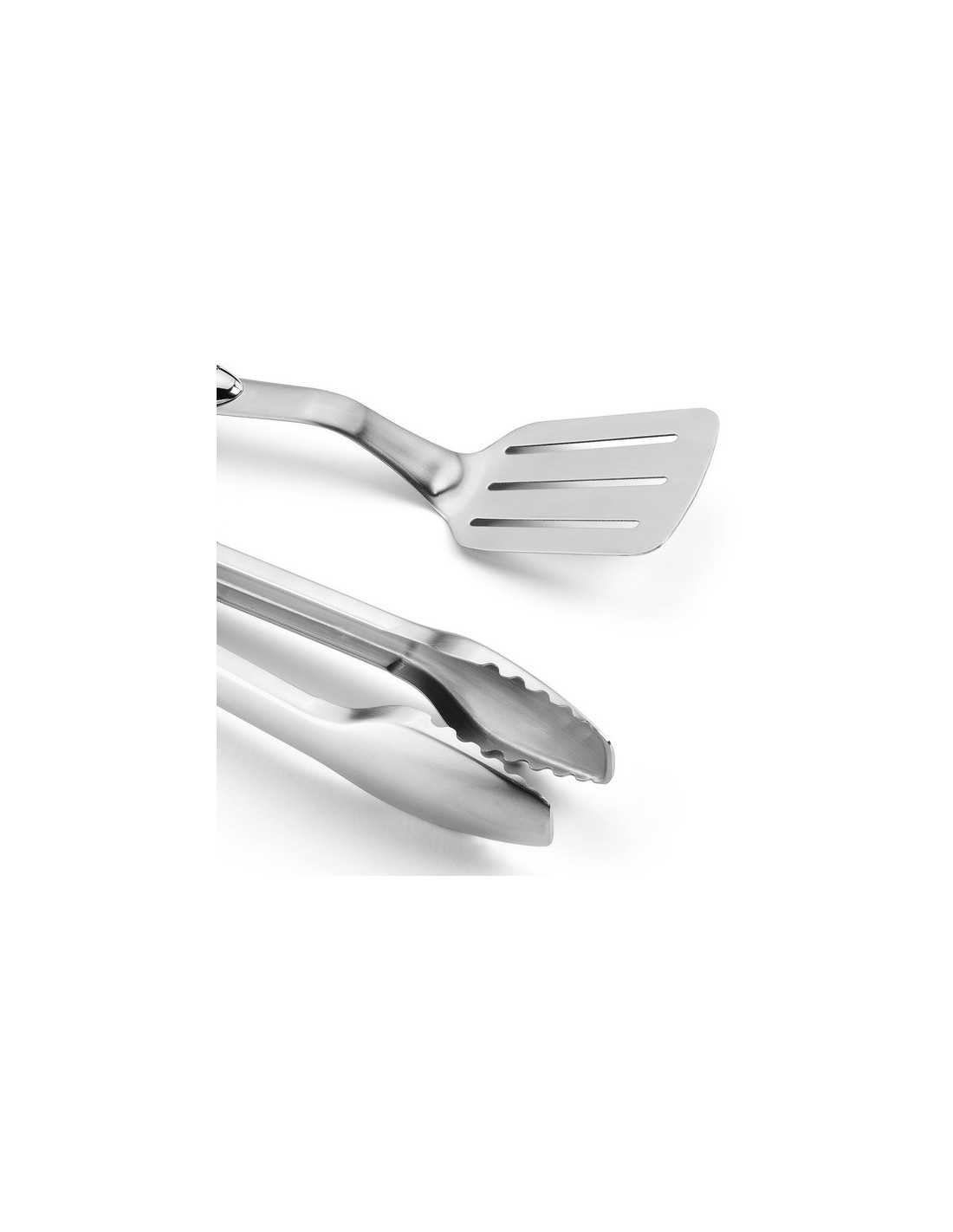 Gli accessori sono realizzati in acciaio inox e sono di grandi dimensioni pur essendo molto leggeri. L'impugnatura è in silicone per avere un grip sempre ottimale ed è ergonomica. Dopo il primo utilizzo si entra subito in confidenza con l'attrezzo e una volta davanti la griglia diventerete inseparabili.
